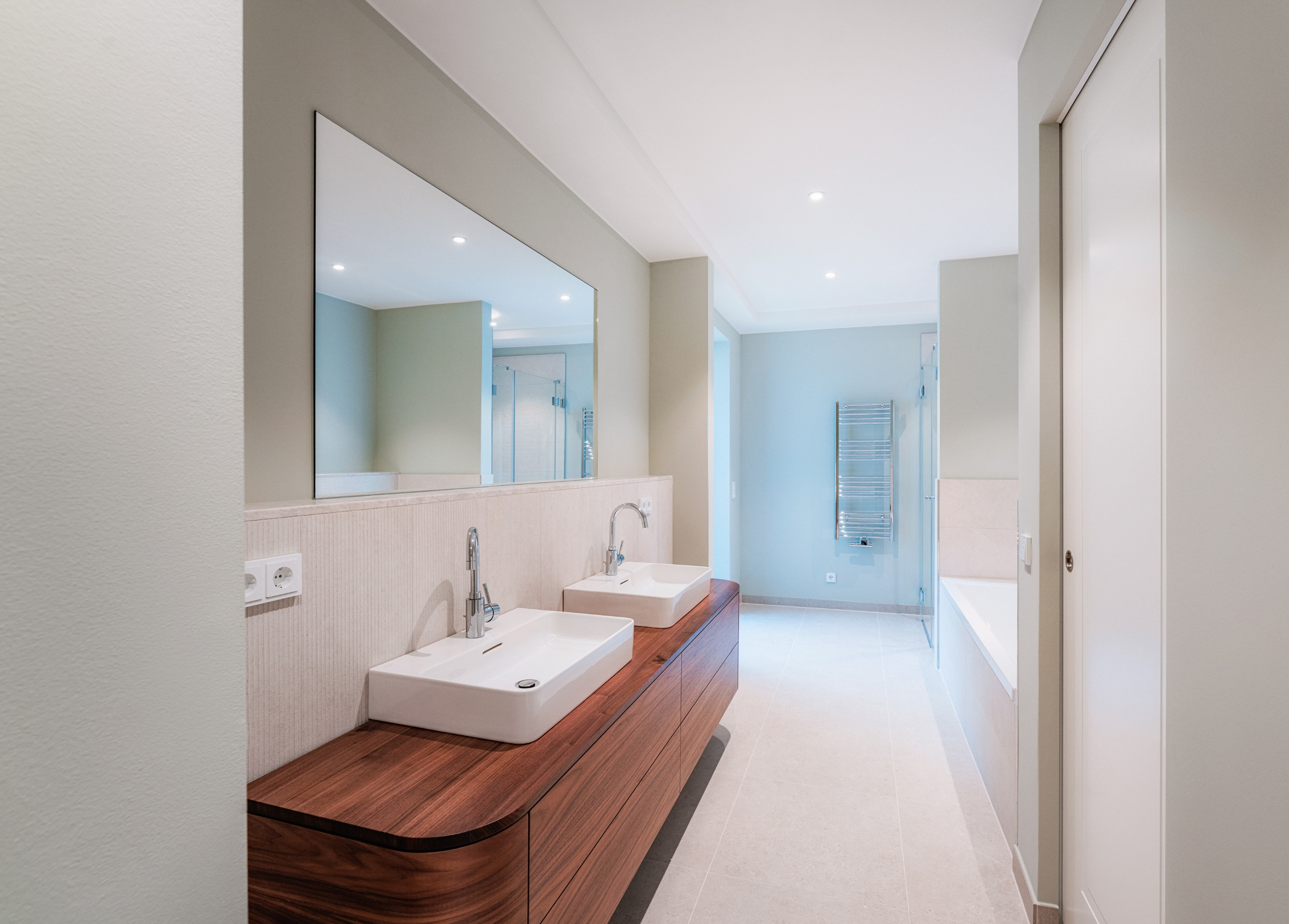 Unser Anspruch an kompromisslose Qualität hat dazu geführt, dass deutlich mehr umgesetzt wurde als ursprünglich geplant. Davon profitieren heute Mieter wie eine Arztpraxis, ein Fliesenstudio, eine Agentur und mehrere Familien. Sie alle genießen exklusiven Komfort, viel Ruhe und Privatsphäre – unterstützt durch separate Hauseingänge und kaum Begegnungsflächen.
