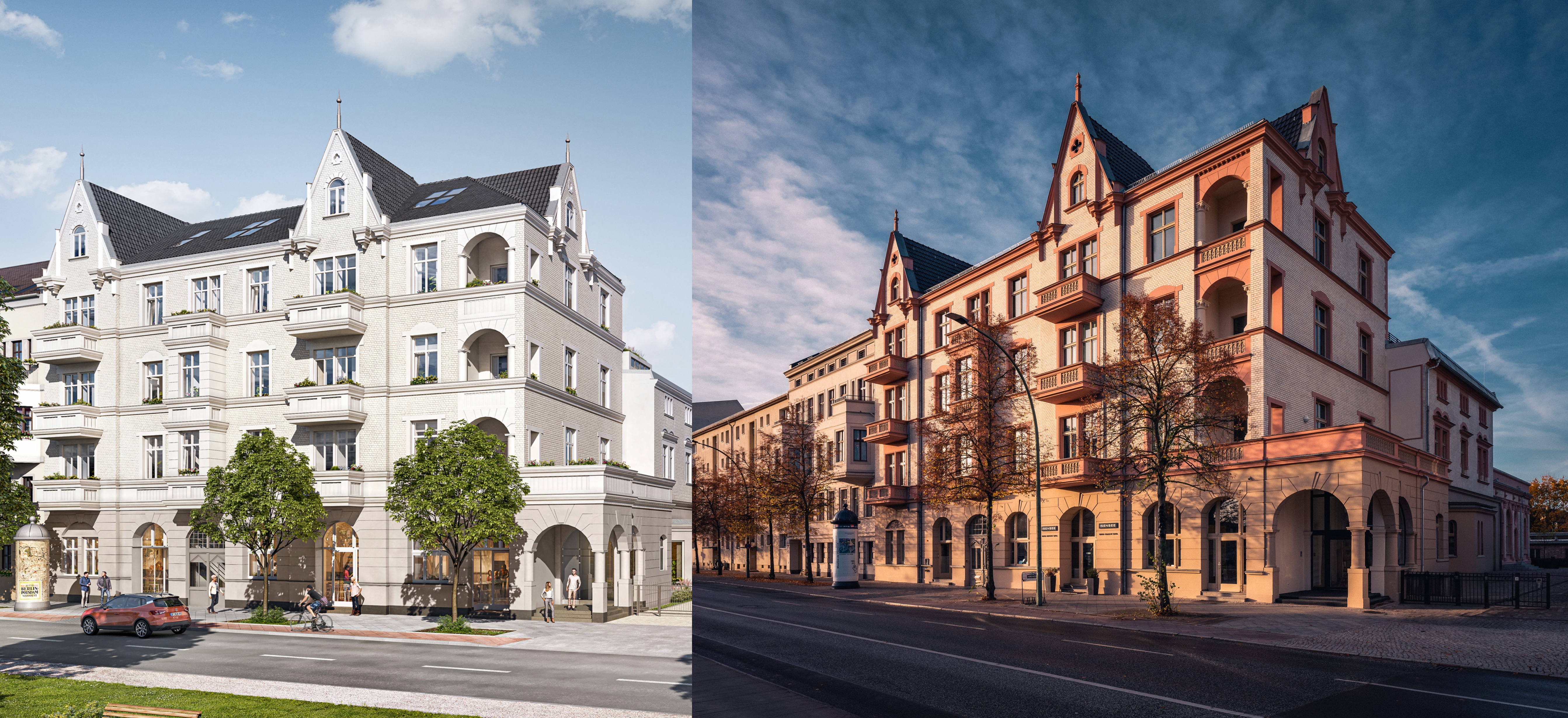 - 13 komplett sanierte Altbauwohnungen mit 77 bis 214 m² und aufwendig wiederhergestelltem Stuck