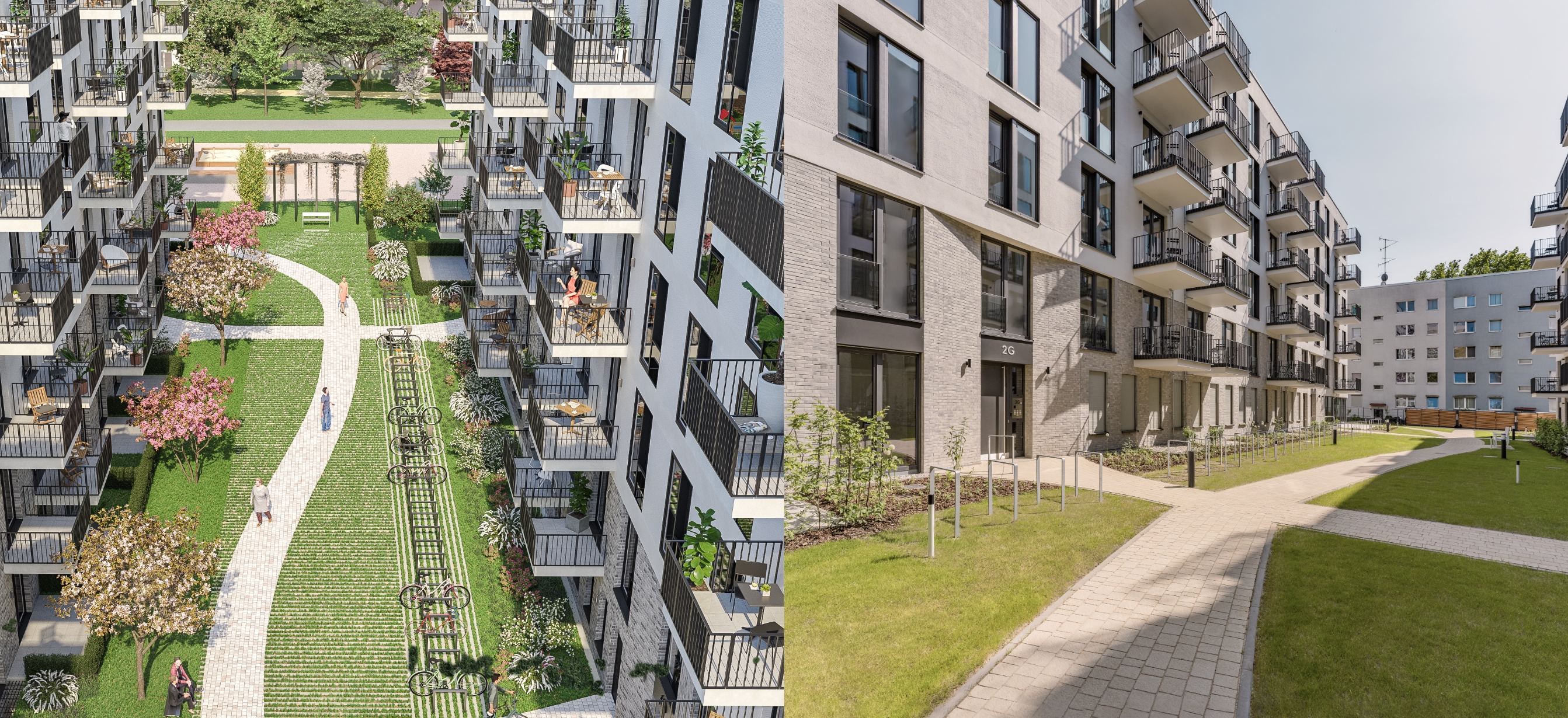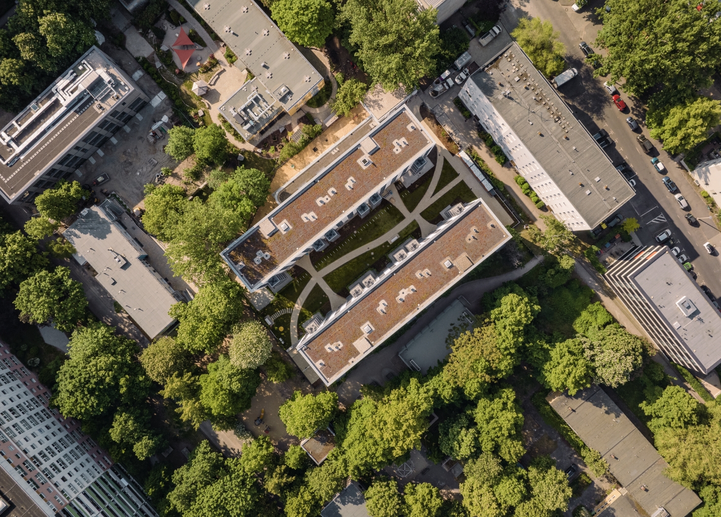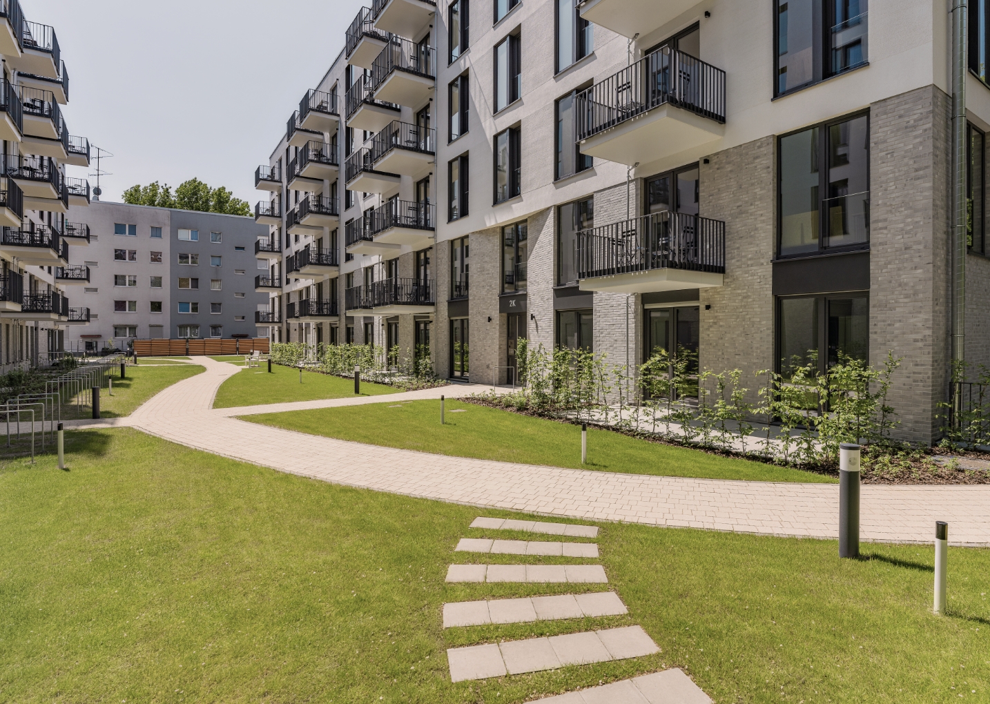 Durchatmen und die Seele baumeln lassen – das kann man nicht nur auf dem eigenen Balkon oder auf den Gartenterrassen der Erdgeschosswohnungen, sondern auch im grünen, stilvoll gestalteten Innenhof. Mit seinen Wegen, Beeten und Bänken eine schöne Kulisse, um dem Berliner Alltag eine Verschnaufpause zu gönnen.
